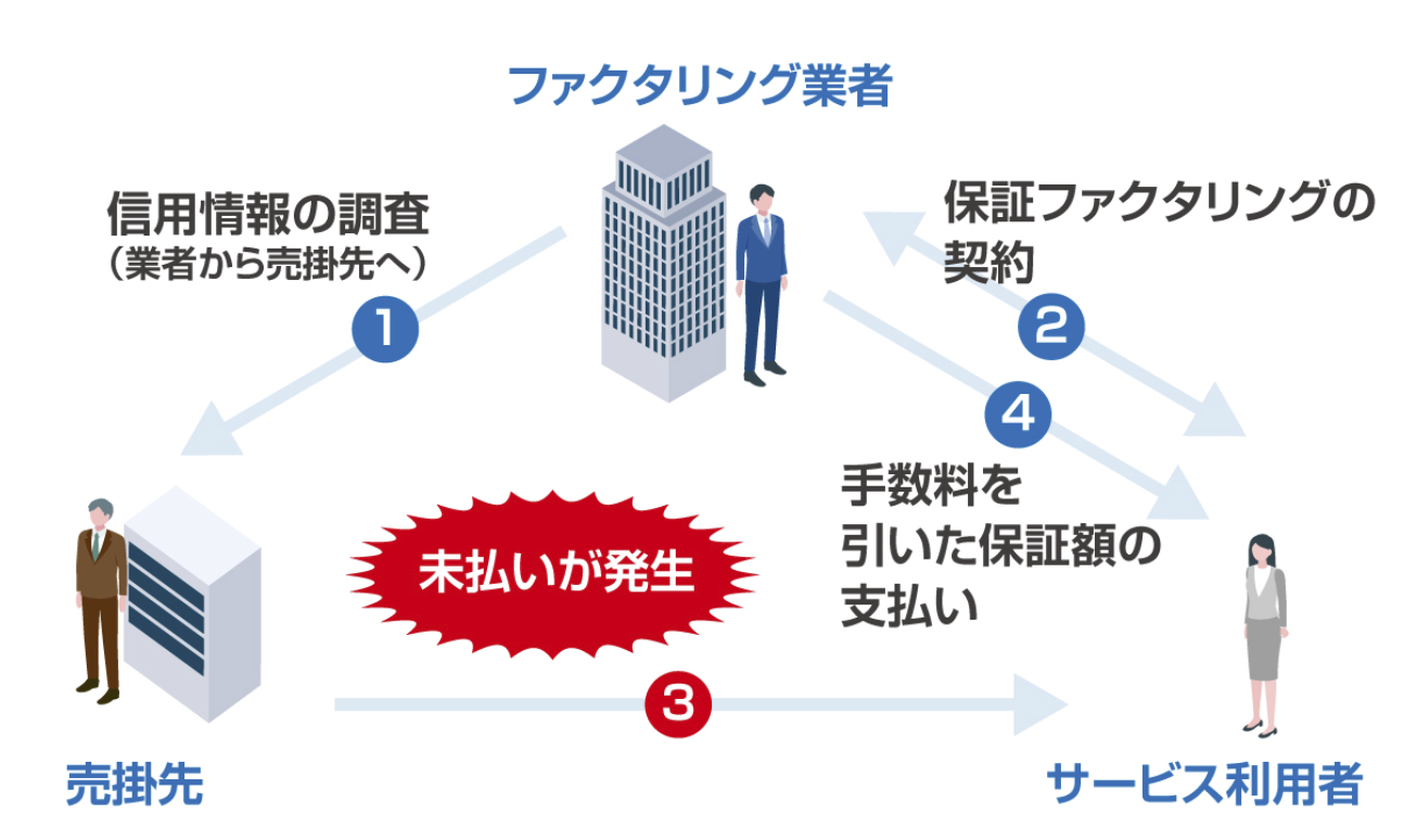 保証型ファクタリングは、取引先の倒産などによって売掛金が未回収になるリスクを最小限に抑えるためのサービスです。