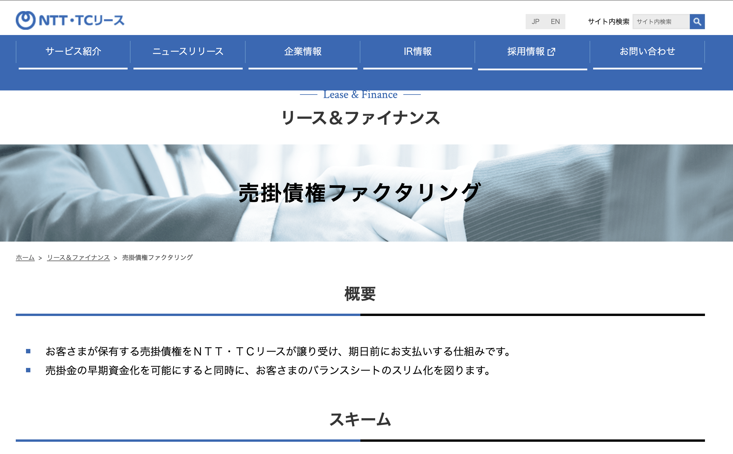 ファクタリングの他にも、リース・決済・債権管理などのサービスも提供していて、資金調達から回収までをまとめてサポートすることも可能な点が強みといえますよ。