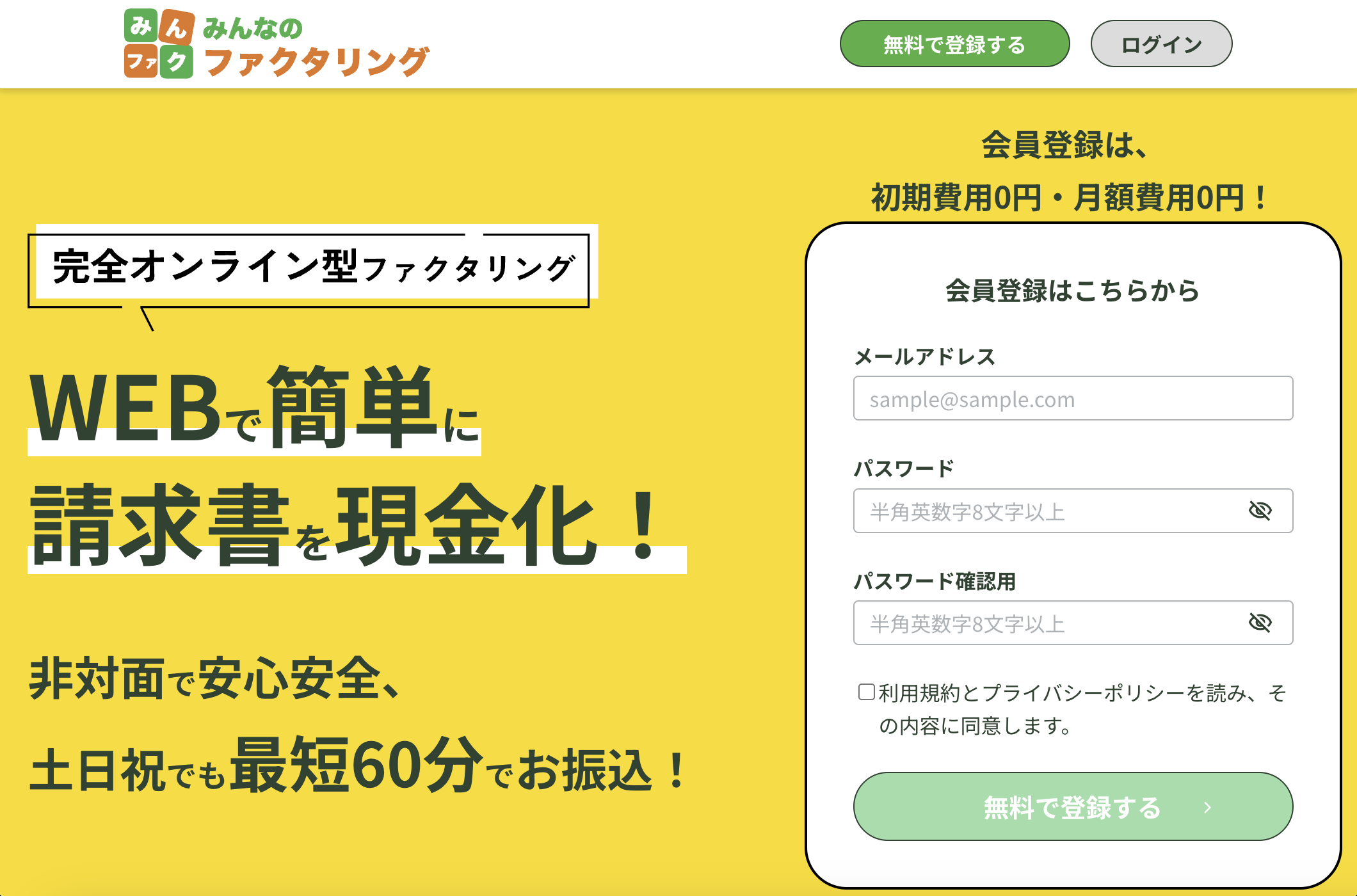 みんなのファクタリングは、二者間ファクタリングに特化した完全オンラインのファクタリング会社です。