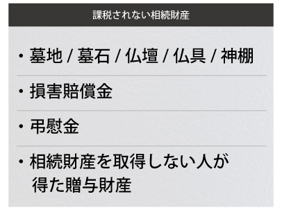 ここからさらに相続税が課税される財産と課税されない財産に分けることができます。