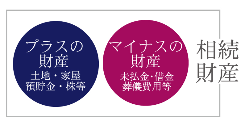 被相続人の「プラスの財産(預貯金・不動産・有価証券など)」から、「マイナスの財産(借入金・未払金・葬儀費用)」を差し引いた価額となります。
