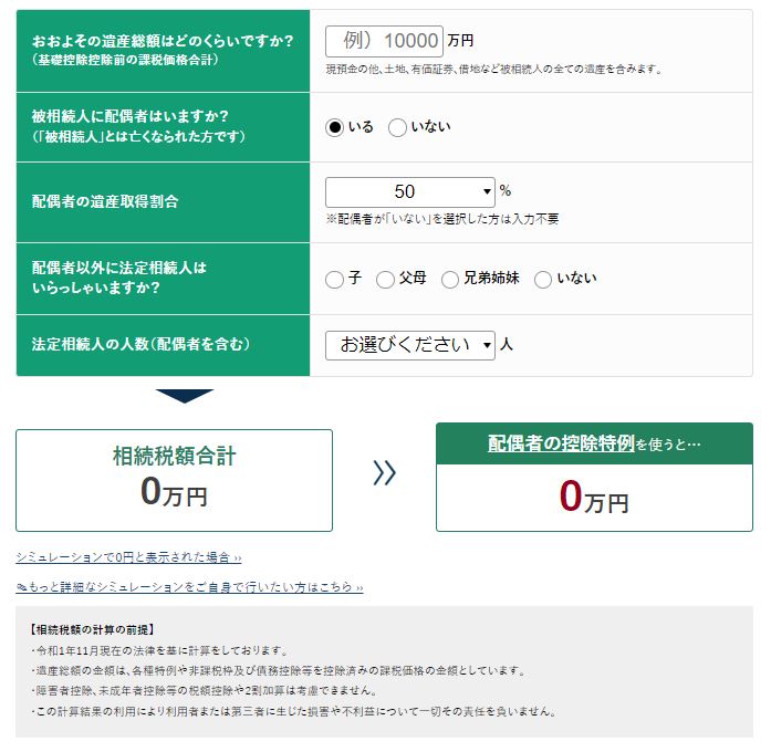 より正確な相続税額を知りたい場合は、税理士法人チェスターの「相続税のシミュレーションツール(無料)」をご利用ください。