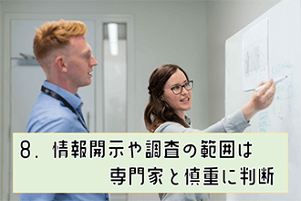8. 情報開示や調査の範囲は専門家と慎重に判断
